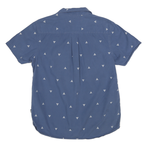 This mens shirt from THE NORTH FACE features a blue base colour with a subtle all-over print of small white triangular shapes, providing a casual and understated pattern. It has a classic shirt collar and a front button closure with matching blue buttons, along with a single chest pocket on the left side.