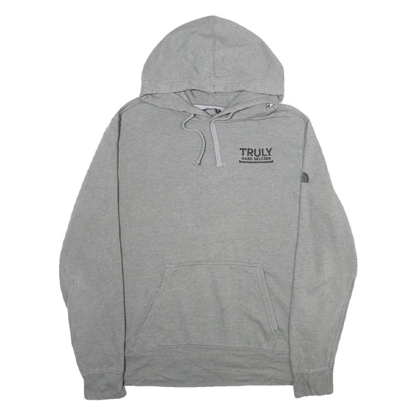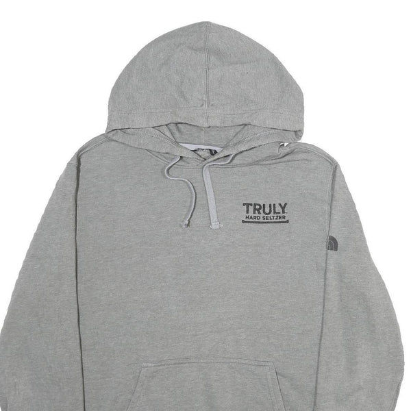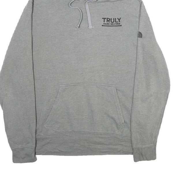 This mens hoodie from The North Face features a light grey colour with a printed 'TRULY HARD SELTZER' logo on the left chest and the black The North Face logo on the upper left sleeve. It is made from a comfortable cotton blend fabric offering softness with durability suitable for everyday wear.