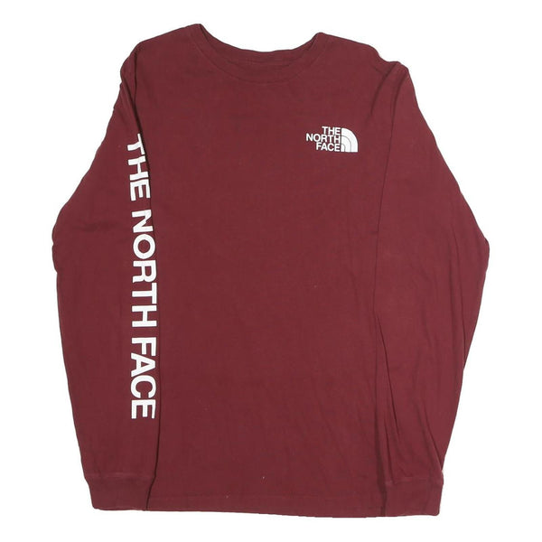 THE NORTH FACE Mens Maroon Long Sleeve Crew Neck T-Shirt M Logo Sleeve Print