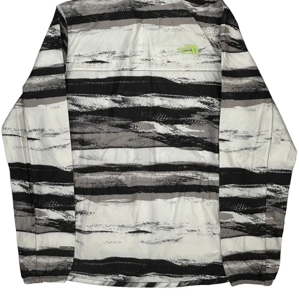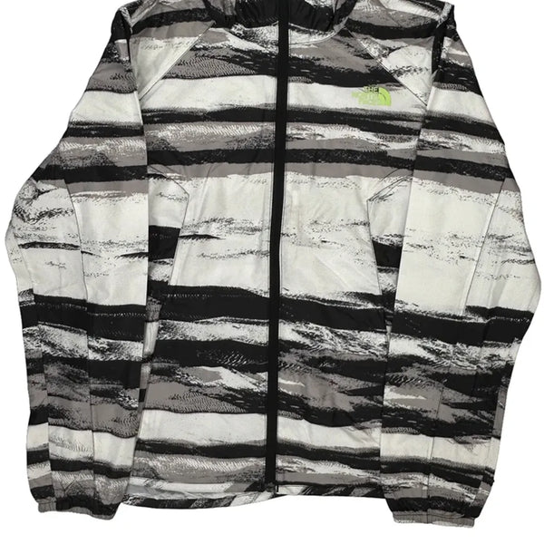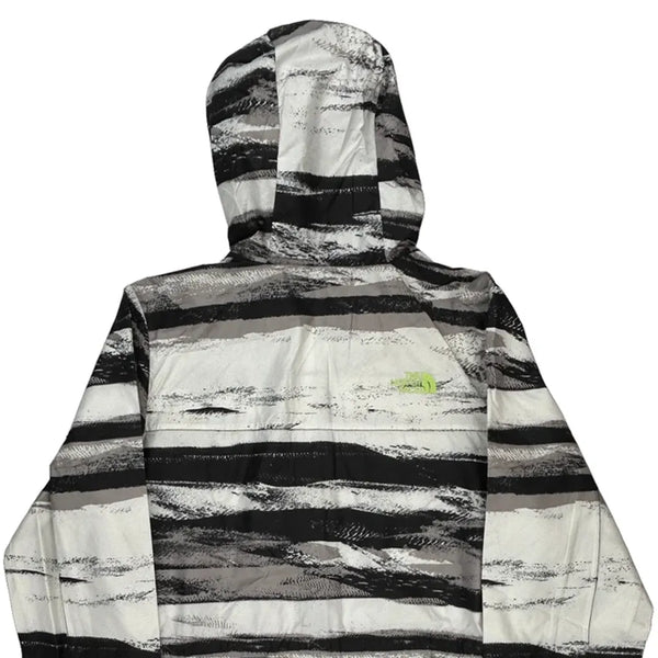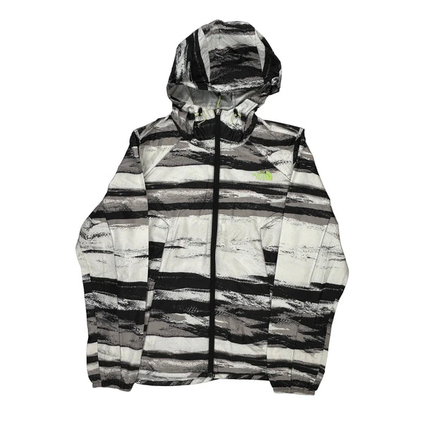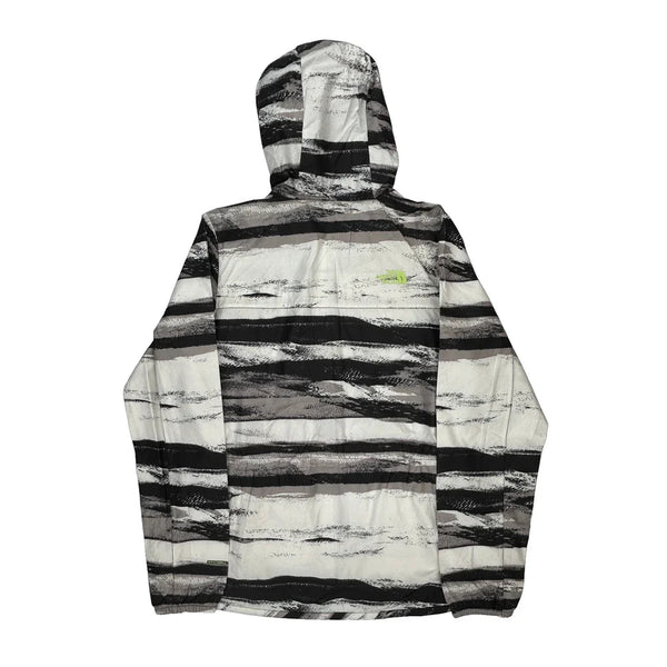 The Jacket Has A Unique Brush Stroke Pattern With A Hood And Front Zipper Closure.