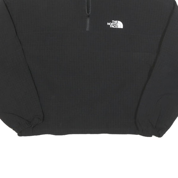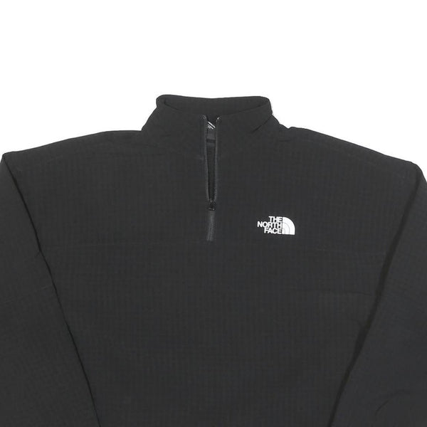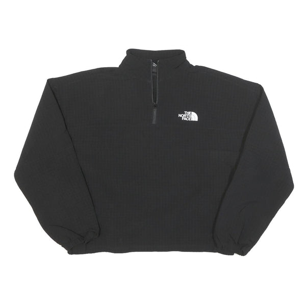 This womens jacket from THE NORTH FACE comes in solid black, featuring the brand’s iconic white logo on the left chest for a clean and recognizable look. It has a half-zip closure that allows for easy layering and temperature control. The high collar adds protection and enhances the jacket's outdoor functionality.