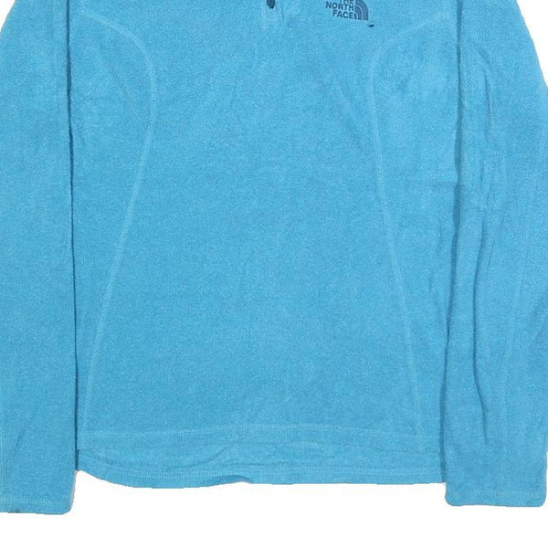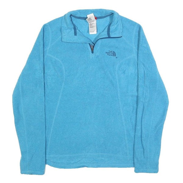 This womens pullover jumper from The North Face is presented in a vibrant blue shade with a plain design that emphasizes its classic simplicity. It features a subtle half-zip collar and the iconic The North Face embroidered logo on the front chest, adding understated branding. The jumper has long sleeves and a crew neckline, providing warmth and casual style.