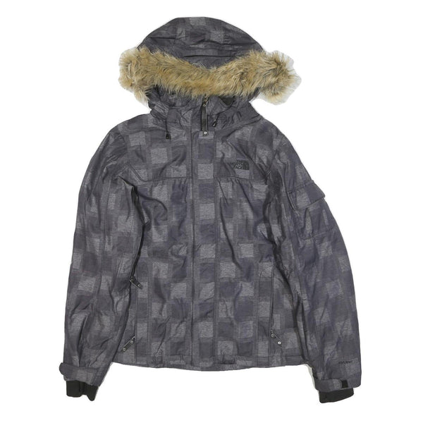 Home THE NORTH FACE Womens Grey Checked Hooded Jacket M Polyester Blend Zip Winter