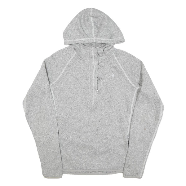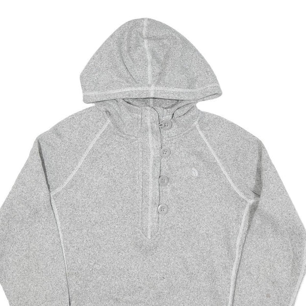 Designed with a hood and a four-button crew neck closure, this jumper combines casual and functional style. The fit appears relaxed, suitable for layering or wear on its own, making it perfect for outdoor activities or casual wear.