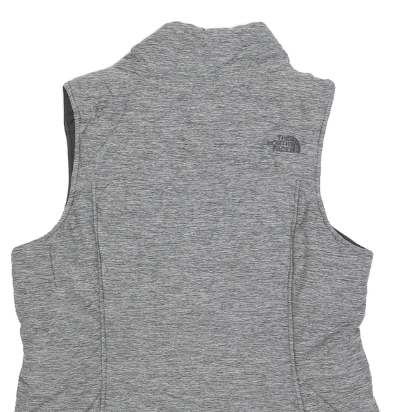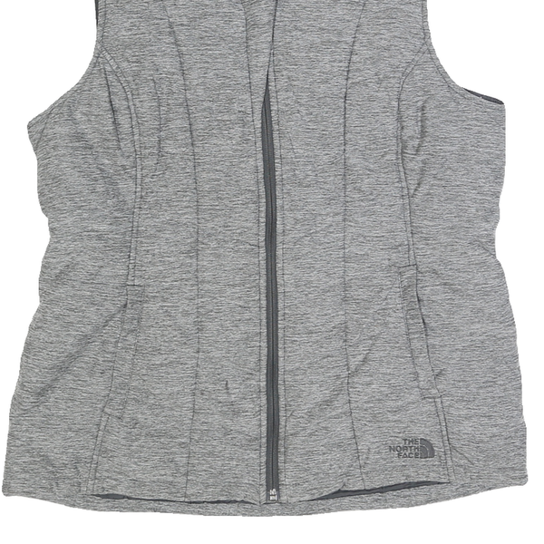 This womens sleeveless jacket from THE NORTH FACE features a heather grey colour with a subtle tonal pattern throughout. The front showcases a full-length zip closure and the brand's logo embroidered in grey on the lower front and back shoulder for understated branding.