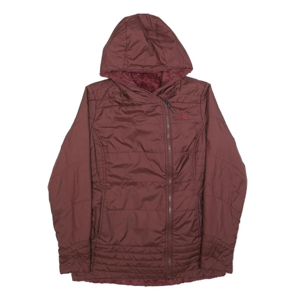 THE NORTH FACE Womens Maroon Red Reversible Hooded Jacket S Polyester Puffer