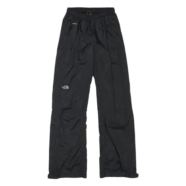 The front is adorned with subtle branding including the iconic THE NORTH FACE logo and 'HyVent' technology text, highlighting the waterproof and breathable fabric features. The trousers also feature zippered side pockets for secure storage. Ideal for both casual wear and outdoor adventures, these trousers combine style with functionality.