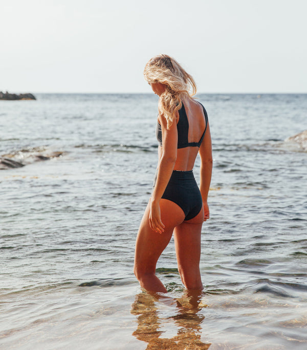 This garment was produced consciously.Made out of ECONYL®, a 100% regenerated yarn derived from recycled fishing nets and other nylon waste. A little step towards a cleaner, bluer planet.The fabrics we use feature UV protection, shape retention and are resistant to chlorine, sunscreen and oils.Composition: 78% ECONYL® Recycled polyamide / 22% Elastane.