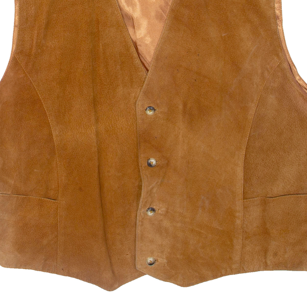 THE TRADER JEANS COMPANY Mens Waistcoat Brown Leather L