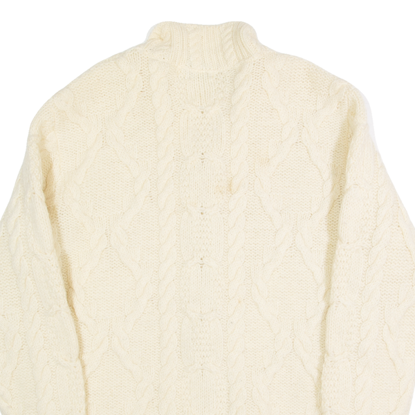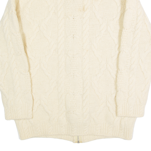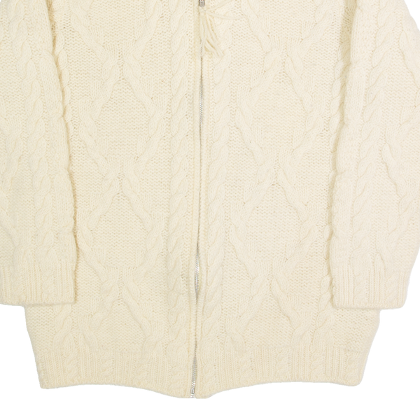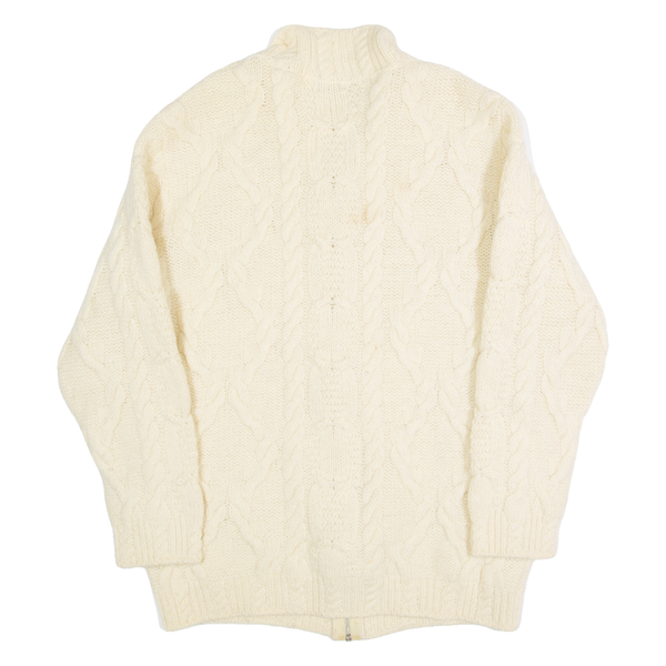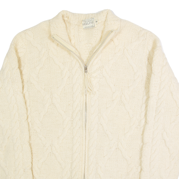 THOMAS KEELING Womens Aran Cardigan Cream High Neck 90s Wool M