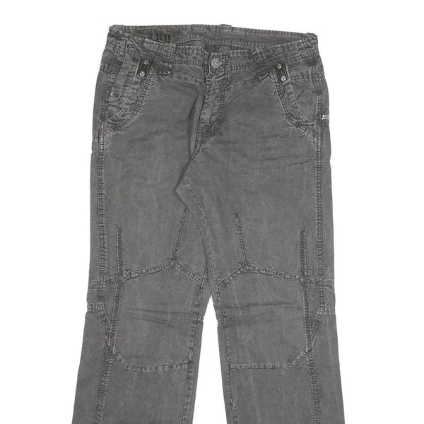 Threenity mens grey regular fit straight cotton blend jeans w32 l33 zip closure