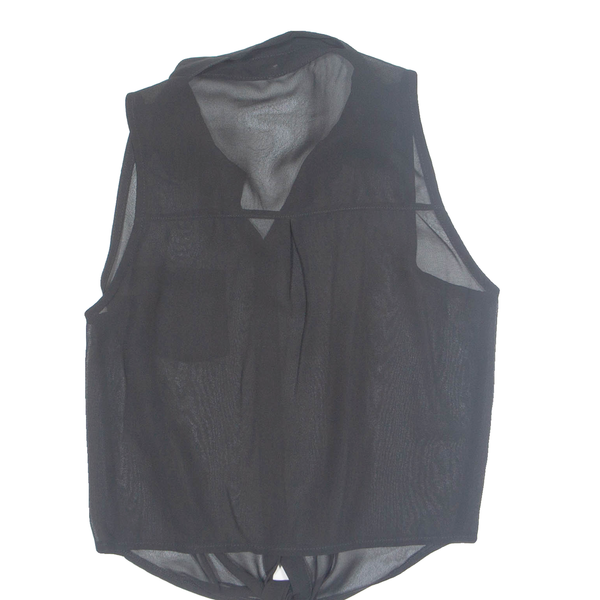 Tie Front Sheer Womens Shirt Black Collared S