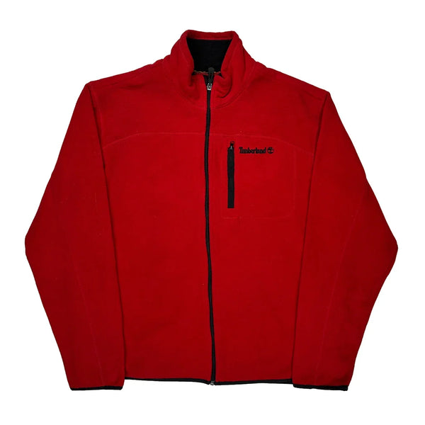 Red Fleece Jacket With Zipper Closure And Chest Pocket