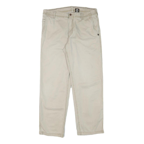TIMBERLAND Mens Cotton Blend Beige Regular Fit Straight Trousers W36 L32 Casual