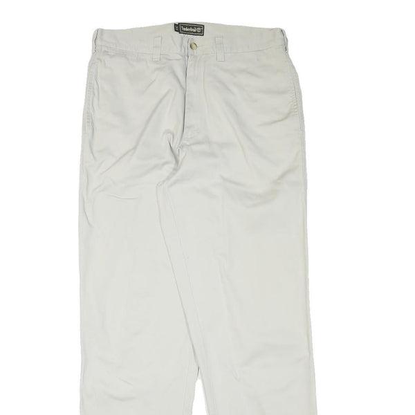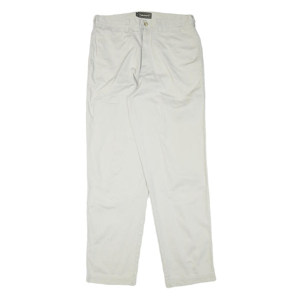 TIMBERLAND Mens Cotton Blend White Regular Straight Trousers W33 L33 Classic Zip