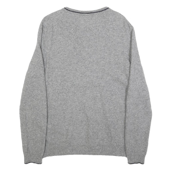 TIMBERLAND Mens Grey Jumper Plain Crew Neck Basic Knit L Wool Blend Casual