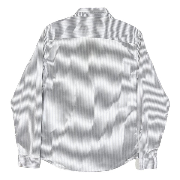 TIMBERLAND Mens White & Grey Striped Cotton Blend Shirt L Button-Down Pocket