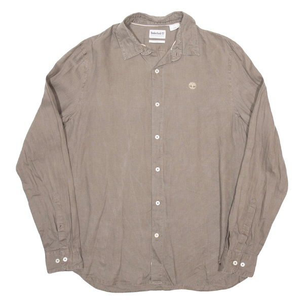 TIMBERLAND Slim Fit Mens Plain Shirt Brown Long Sleeve M