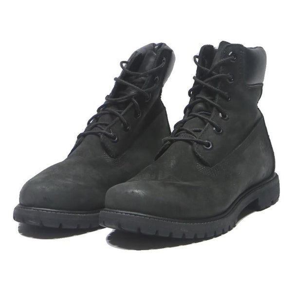 These Timberland womens boots are crafted from black leather, featuring a smooth padded leather collar and robust lace-up design for secure fit and ankle support. The boots have a durable sole with deep tread for traction and outdoor use. The Timberland logo is embossed subtly on the side, reflecting the brand's classic style.