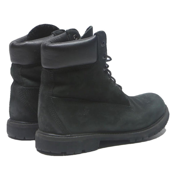 These Timberland womens boots feature a classic lace-up ankle design crafted from black leather, providing a sturdy yet stylish appearance. The boots display the Timberland embossed logo on the outer side, with a padded collar for enhanced comfort and support.