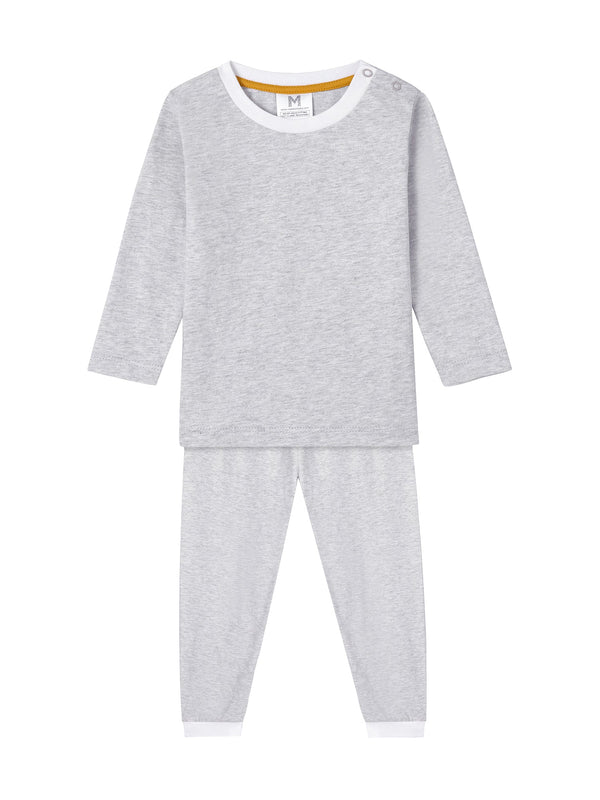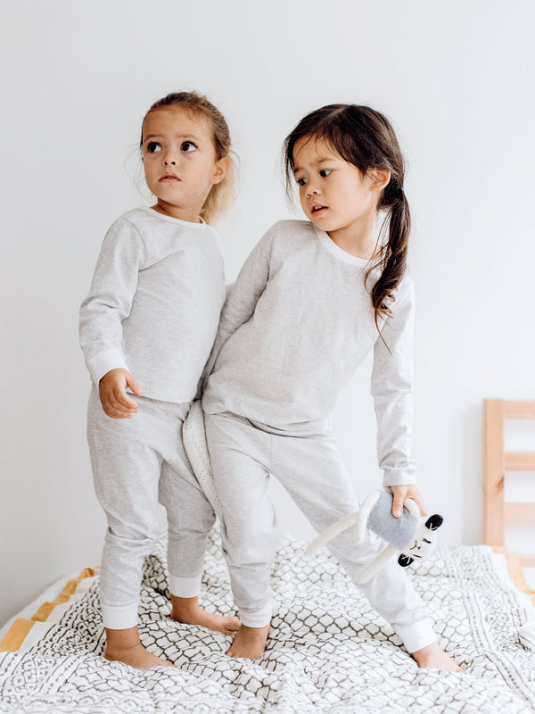 Snuggle up in our Erawan Grey PJ sets! Made from buttery soft organic cotton melange, they're combed for extra softness. The solid grey with white ribbed cuffs gives you a classic bedtime look that's always in style! Sweet dreams await!