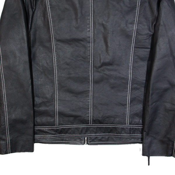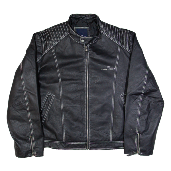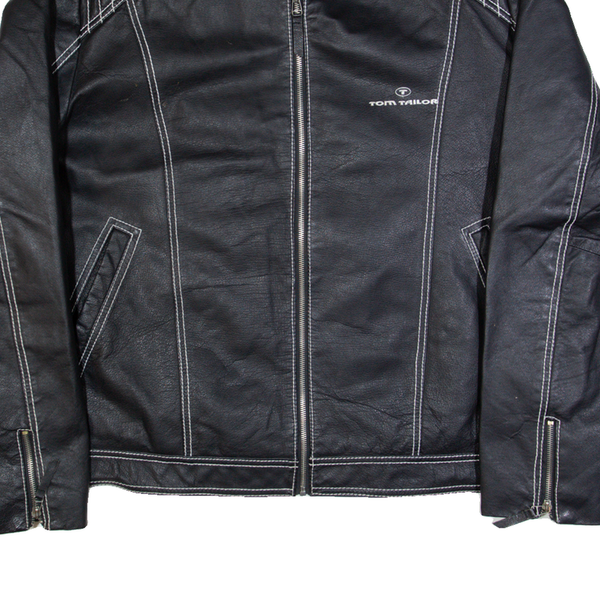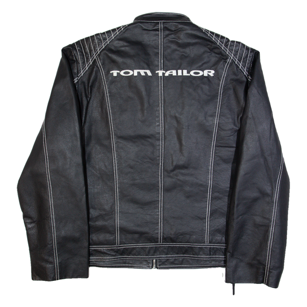 TOM TAILOR 007 Mens Biker Jacket Black Leather 90s XL