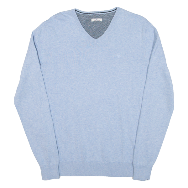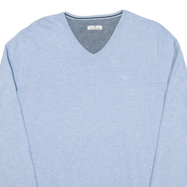 TOM TAILOR Mens Jumper Blue V-Neck Tight Knit M