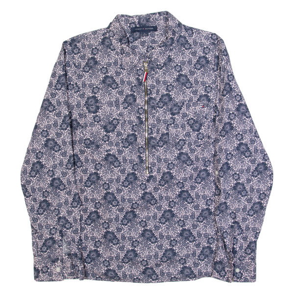 Home TOMMY HILFIGER 1/2 Zip Up Womens Shirt Purple Floral Long Sleeve M
