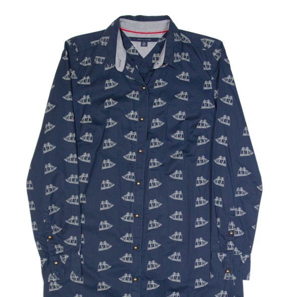 TOMMY HILFIGER Boats Womens Shirt Dress Blue Long Sleeve Knee Length XS