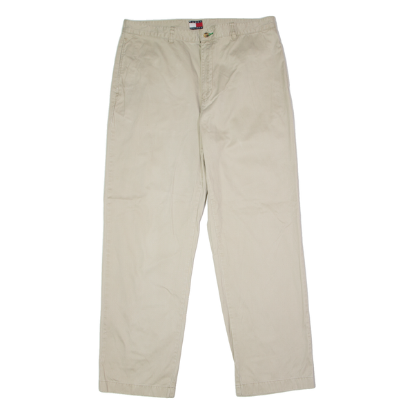 TOMMY HILFIGER Chino Mens Twill Trousers Beige Straight 90s W36 L32