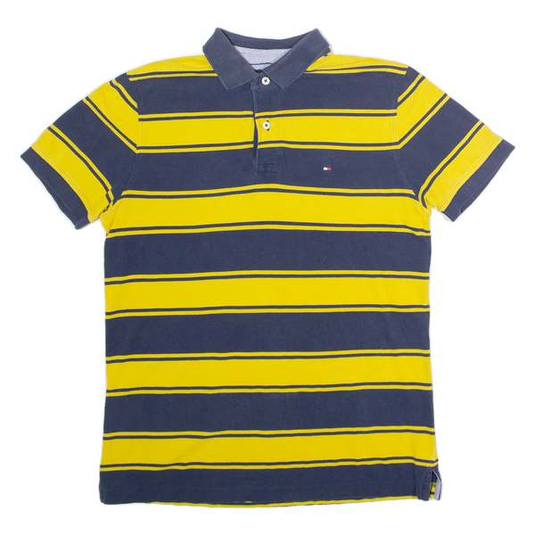 TOMMY HILFIGER Custom Fit Mens Polo Shirt Yellow Striped M