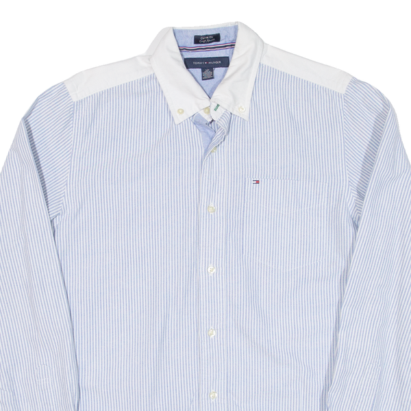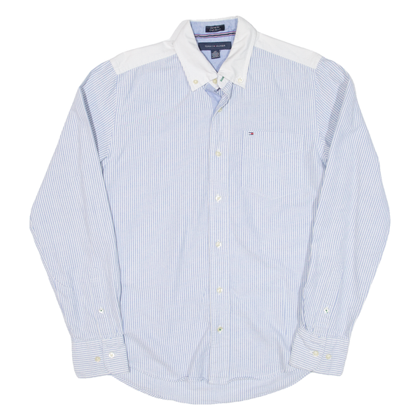 TOMMY HILFIGER Custom Fit Mens Shirt Blue Striped Long Sleeve S