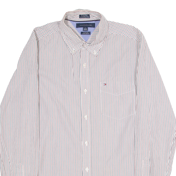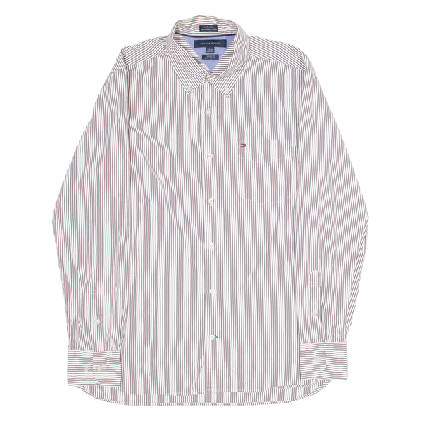 Home TOMMY HILFIGER Custom Fit Mens Shirt White 80s Striped Long Sleeve M