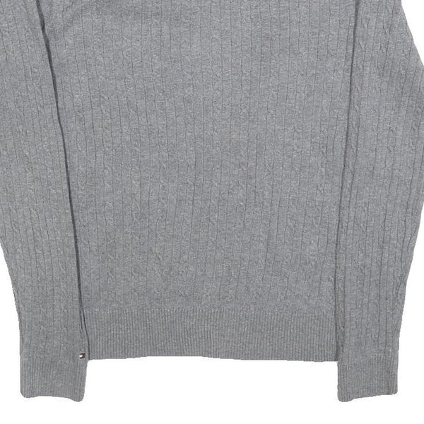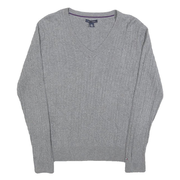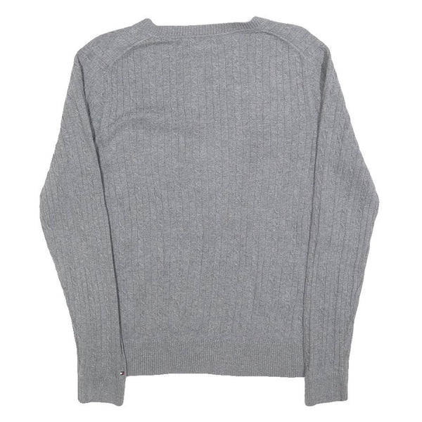 TOMMY HILFIGER Girls Grey Plain Cotton Jumper V-Neck Cable Knit L Lightweight