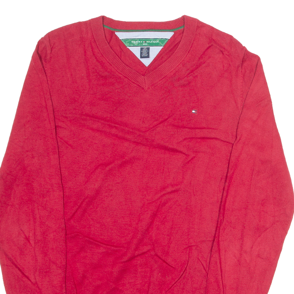 TOMMY HILFIGER GOLF Mens Jumper Red V-Neck Tight Knit S