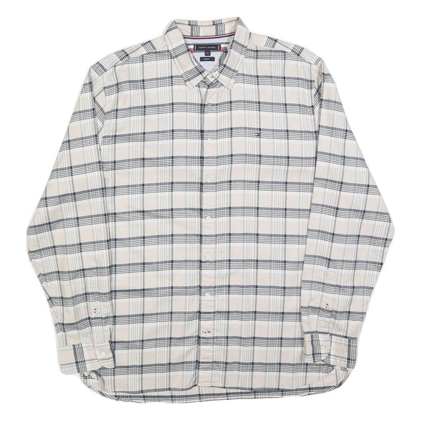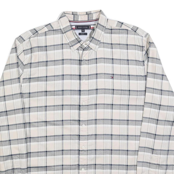 TOMMY HILFIGER Mens Beige & Grey Check Shirt 2XL Cotton Blend Long Sleeve