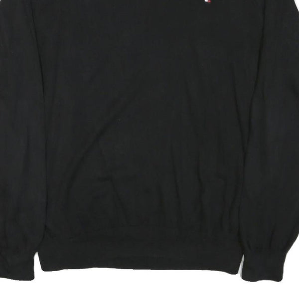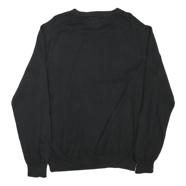 TOMMY HILFIGER Mens Black Plain V Neck Basic Knit Jumper XL Cotton Blend Casual