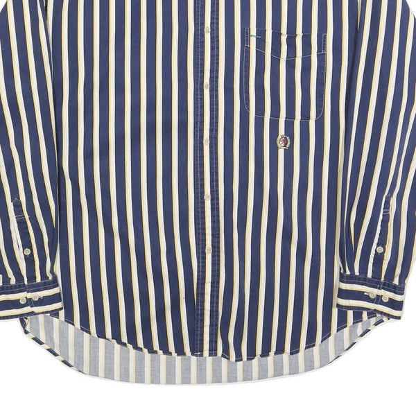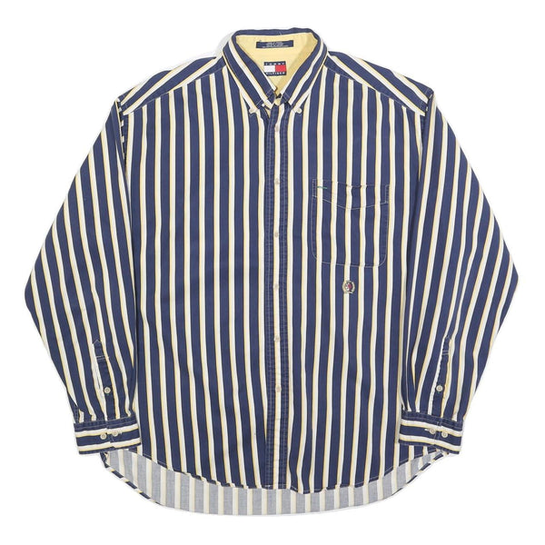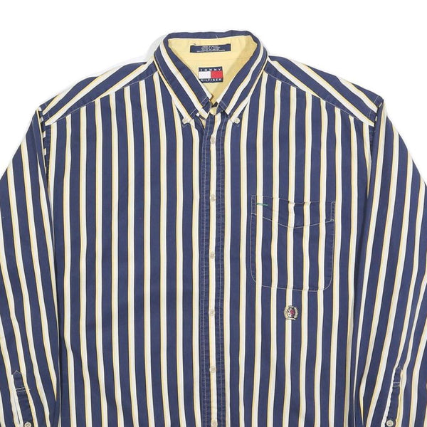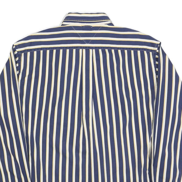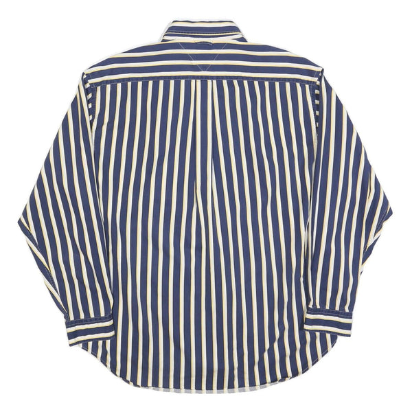 TOMMY HILFIGER Mens Blue & Cream Stripe Cotton Shirt L Button-Down Pocket Casual