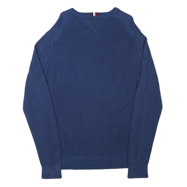 TOMMY HILFIGER Mens Blue Crew Neck Patterned Jumper Cotton Blend XL Pullover