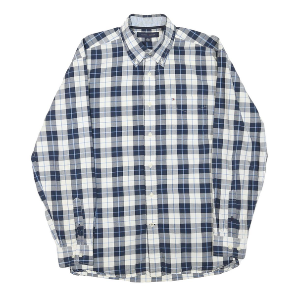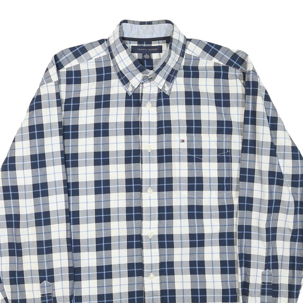 TOMMY HILFIGER Mens Blue & Grey Check Shirt M Button Down Casual Style