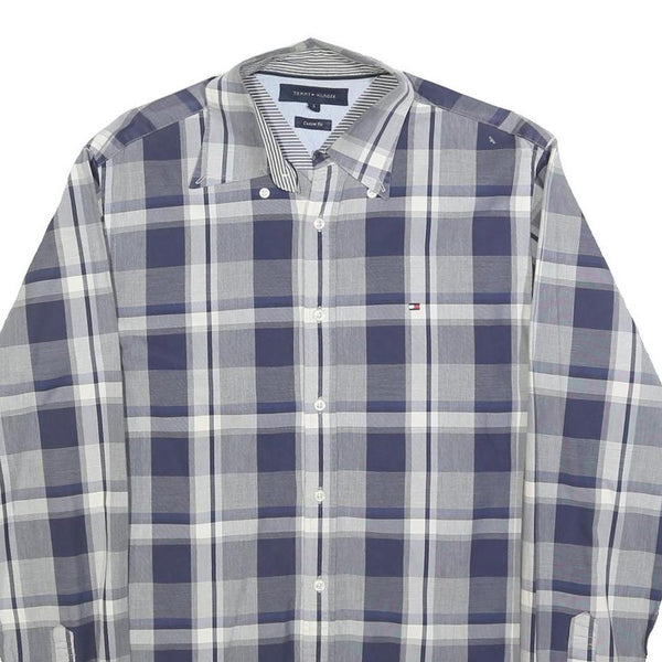 TOMMY HILFIGER Mens Blue Grey Check Shirt S Button Down Cotton Blend Long Sleeve