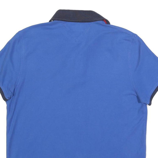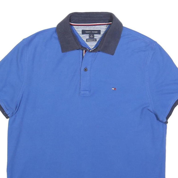 TOMMY HILFIGER Mens Blue & Navy Polo Shirt M Cotton Blend Short Sleeve Basic