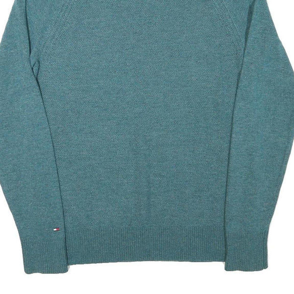 TOMMY HILFIGER Mens Blue Plain Crew Neck Basic Knit Jumper M Wool Blend