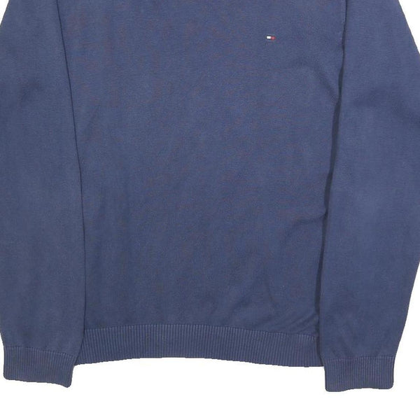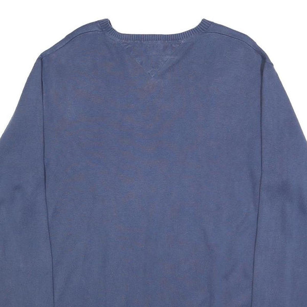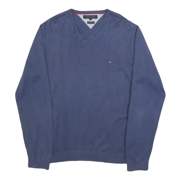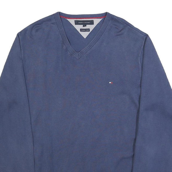 TOMMY HILFIGER Mens Blue Plain V-Neck Basic Knit Jumper L Cotton Classic Style