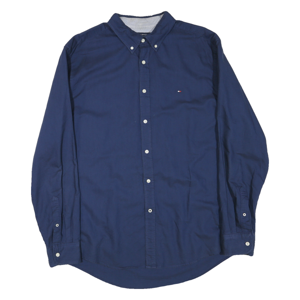 TOMMY HILFIGER Mens Blue Shirt XL Button Down Logo Casual Classic Cotton Blend
