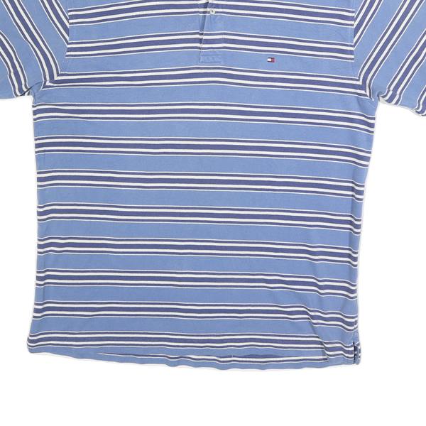 TOMMY HILFIGER Mens Blue Striped Short Sleeve Polo Shirt L Cotton Blend Casual