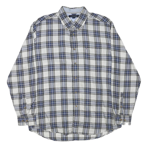 TOMMY HILFIGER Mens Blue & White Check Shirt L Cotton Blend Button Down Relaxed