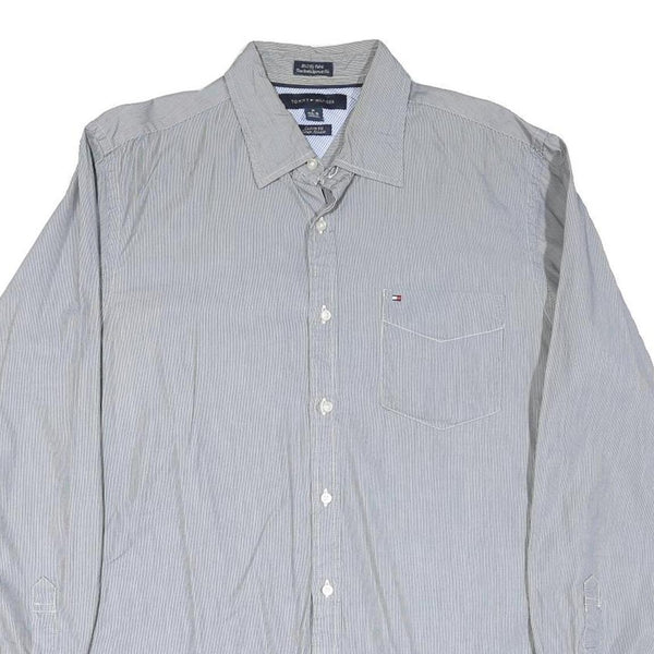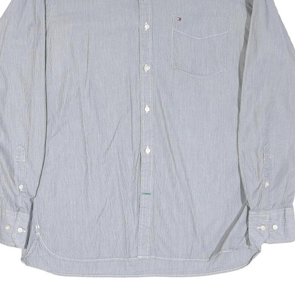 TOMMY HILFIGER Mens Blue & White Stripe Shirt M Classic Button Down Cotton Blend