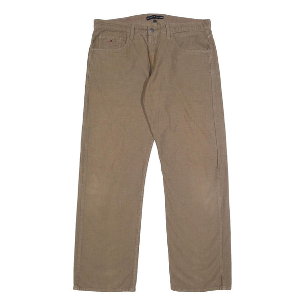 TOMMY HILFIGER Mens Cotton Beige Relaxed Straight Trousers W36 L32 Casual