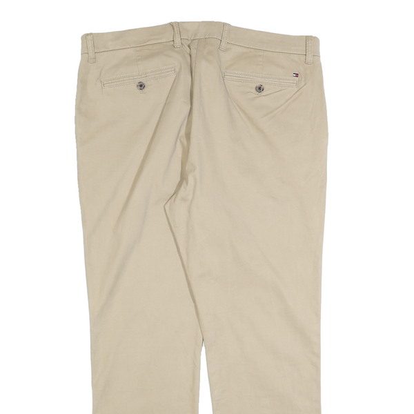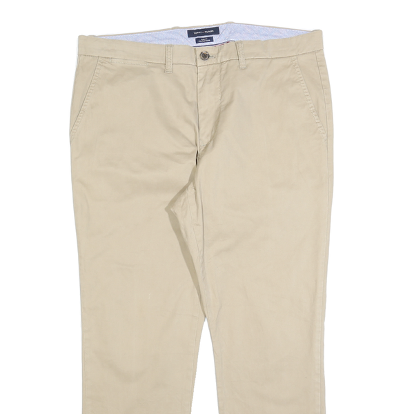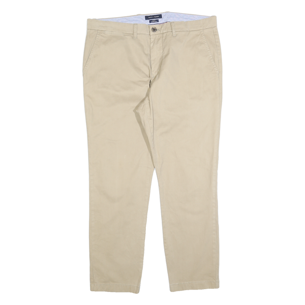 TOMMY HILFIGER Mens Cotton Beige Slim Straight Trousers W36 L30 Casual Smart